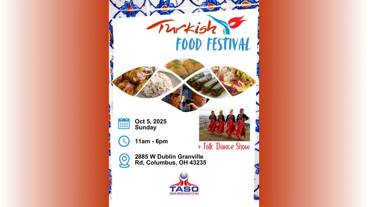 Join the Turkish American Society of Ohio (TASO) Sunday, October 5th 2025, for our Turkish Food and Culture Festival.